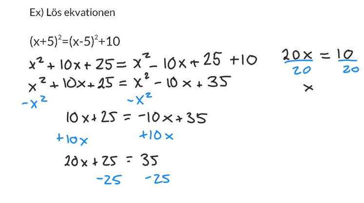Hennes uträkning är ju något helt annat..har jag missförstått uppgiften? Nu hänger jag inte alls med ju :( svaret ska bli x=0.5 och jag fick det till x2=25...