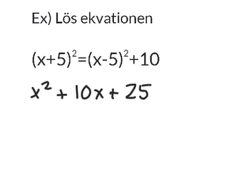 Använd första och andra kvadreringsregeln för att öppna parenteserna. Förenkla så långt som möjligt och då får du en mycket enklare ekvation.