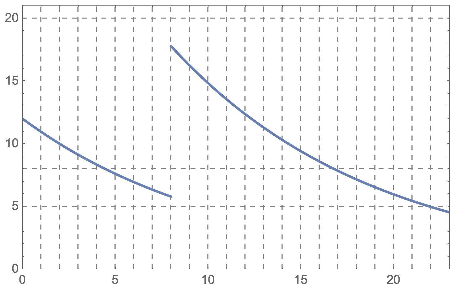 H(8) = 12*0,9138 + 12 och kallar det värdet för a.