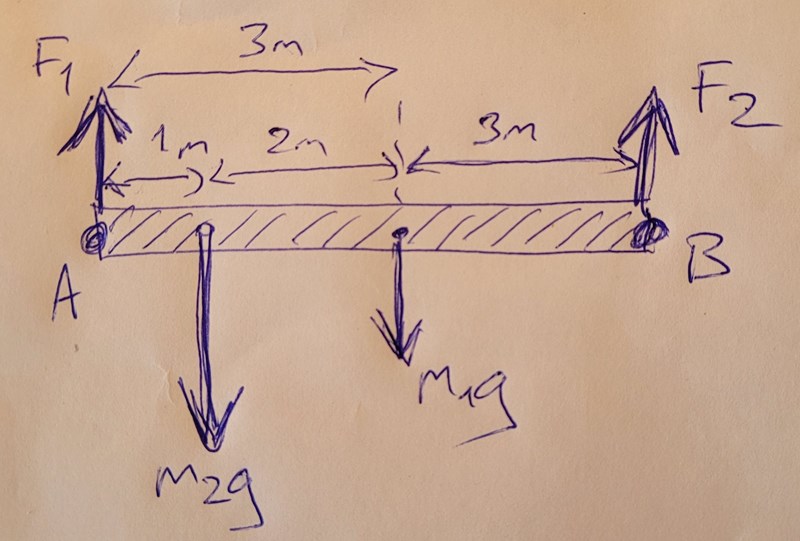 och Kraftmomenteb ska vara i varsin ände av brädan vid f1 och f2