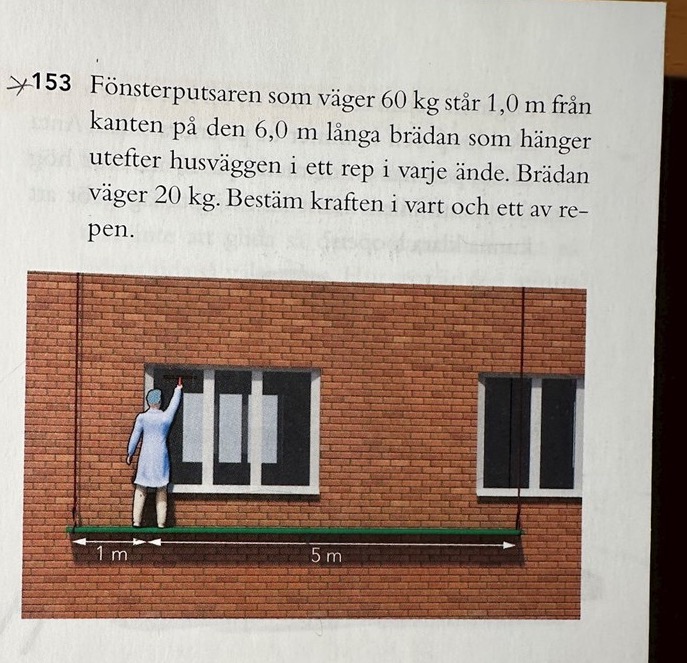 Är tyngdpunkten 1 meter ifrån vänstra kanten av brädan. Då personen står där?
