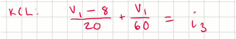 Tack!! Hur resonerar du när du ställer upp med i din ekvation? Jag förstår inte riktigt varför det inte blir i täljaren, har det möjligtvis att göra med strömmens riktning över 30-ohm resistorn?