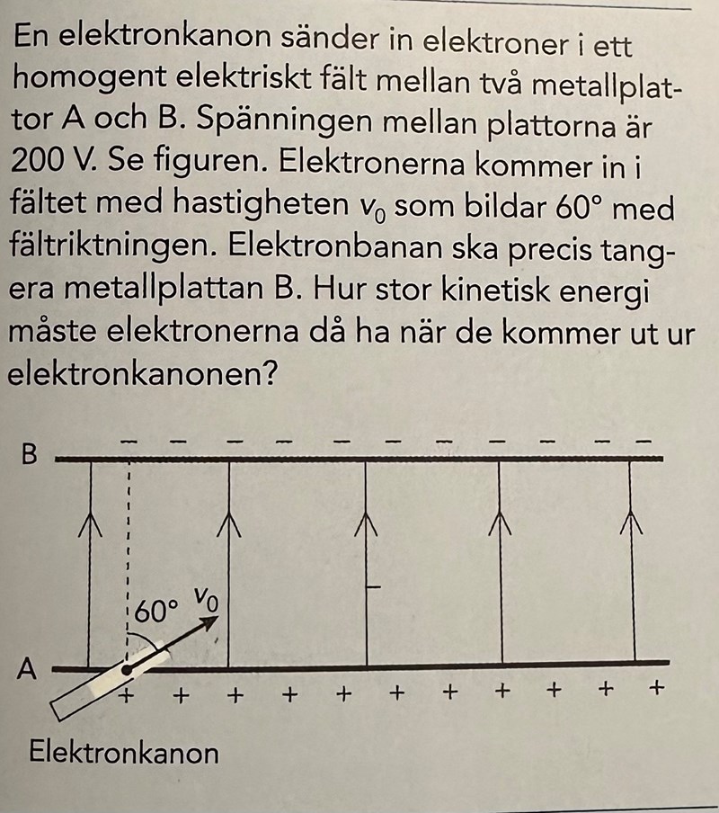 Ja precis. Elektronens kinetiska energi vinkelrätt på plattorna är .