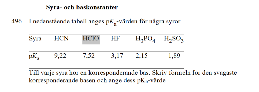 Hej jag förstår inte riktigt varför den starkaste syran bildar en svag korresponderande bas. En stark syra protolyseras nästan helt. Innebär det att den korresponderande basen inte kommer kunna ta upp vätejoner (baser är protontagare), och därför är den då svag... ?