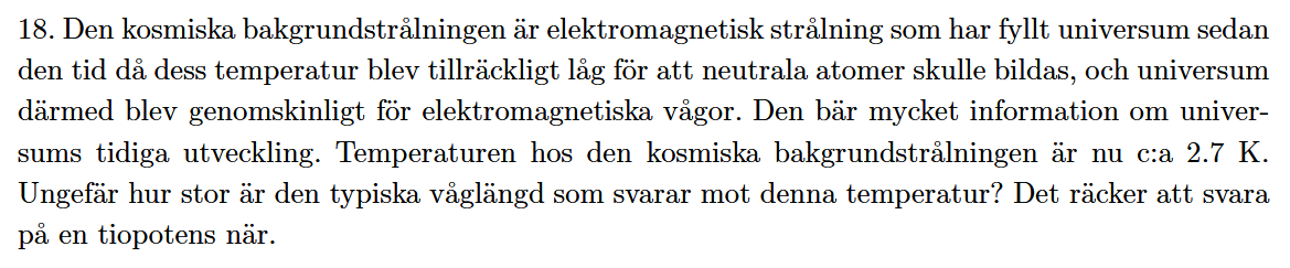 Mafy 2009 uppgift 18 - Kosmiska bakgrundsstrålningens våglängd