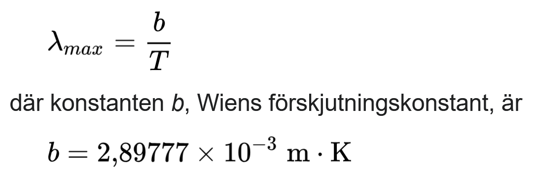 Hej, jag har löst denna uppgift men jag undrar om det finns ett annat sätt att lösa uppgiften utan Wiens förskjutningskonstant. Eller är det tänkt att man ska kunna denna konstant utantill, eftersom den inte finns i listan av konstanter.