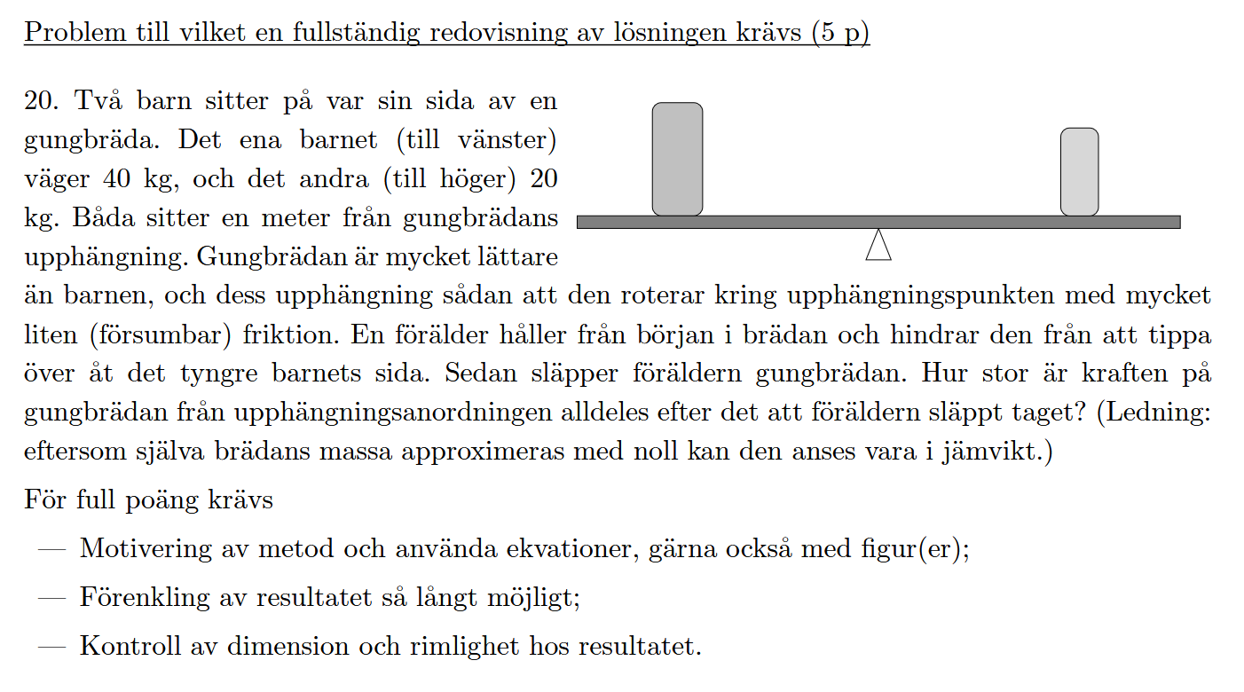 Mafy 2010 uppgift 20 - Gungbräda med acceleration