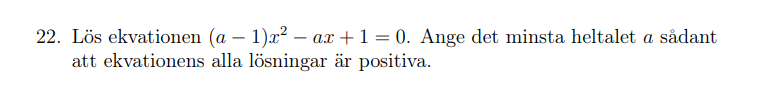 Hussin skrev:Kan man inte bara lösa uppgiften genom att testa a=1, eftersom det är det minsta heltalet? Om det uppfyller villkoret, vet man ju direkt att det är lösningen utan att behöva ställa upp en fullständig lösning.