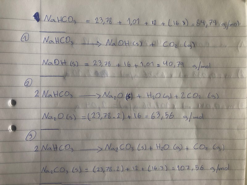 1. NaHCO3 (s) ----> NaOH (s) + CO2
