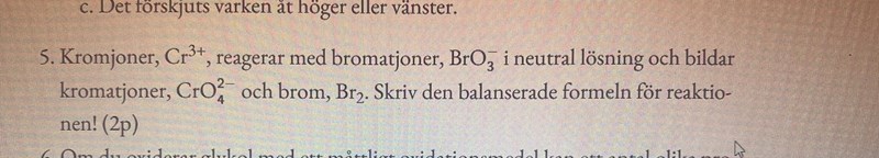 Laddningen ska bli rätt förstås, och antalet atomer också. Du har +1 till vänster och -2 till höger, och dessutom sex O till vänster och bara fyra till höger.