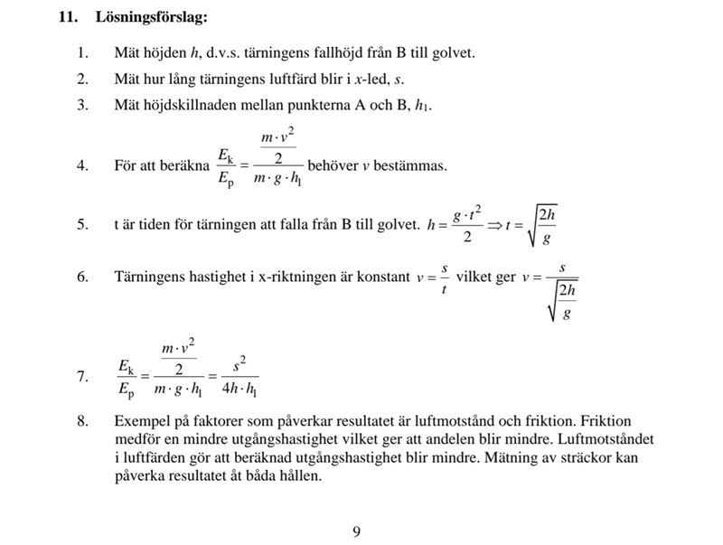 Formeln för h kommer ifrån tärningens fria fall när den lämnar banan.