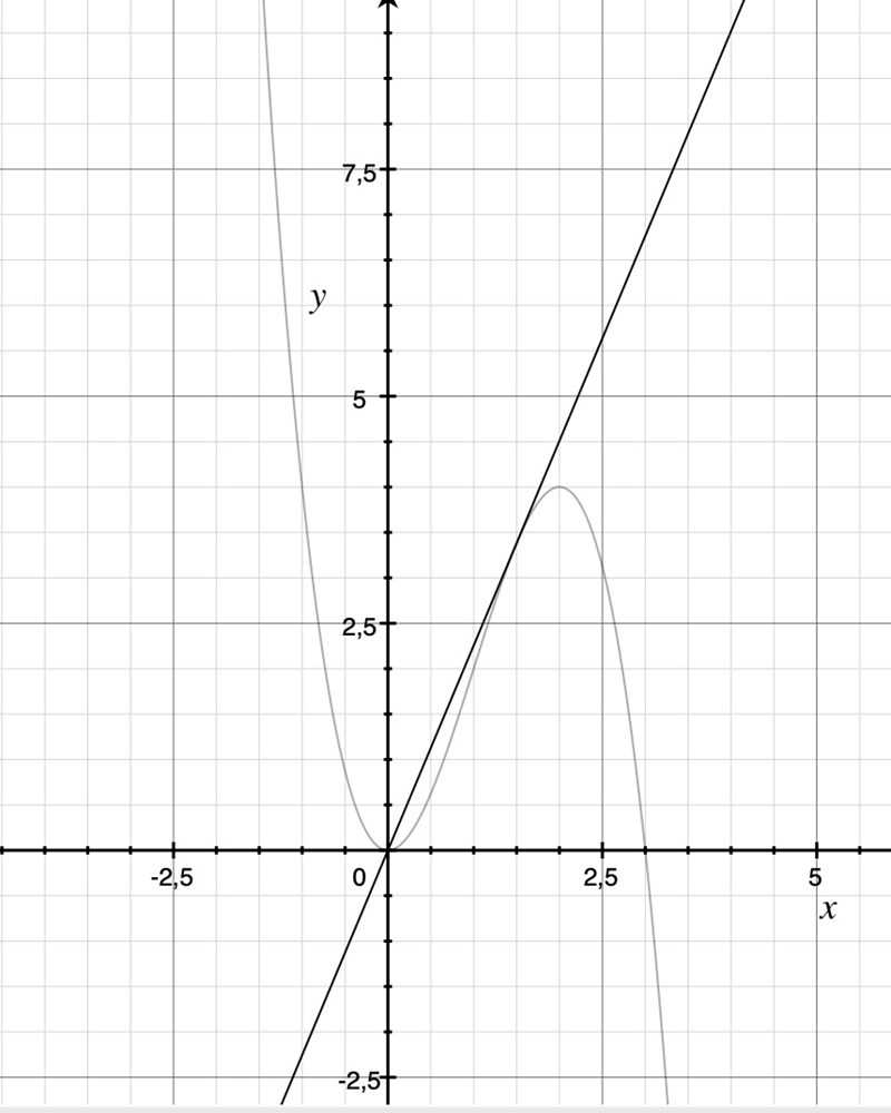 Tack så jättemycket, har gjort som du sa och fick rätt svar. Men förstår inte riktigt varför tangentens lutning ska vara lika med kurvans lutning samtidigt som tangentens y ska vara lika med kurvans y. Varför måste lutningen vara lika?
