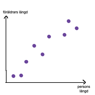 En regressionslinje är en linje som är anpassad för att så väl som möjligt beskriva ett antal datapunkter. Exempel: Vi mäter hur långa tio personer är, och medellängden av deras föräldrar. Vi får följande diagram: