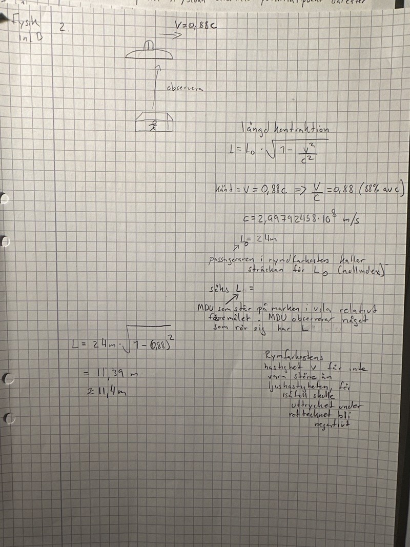 Det handlar om "längdkontraktion". Borde finnas en formel för det i din formelsamling eller bok.