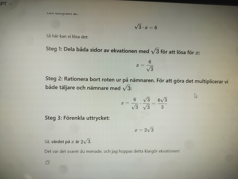 Första gången jag ser chatgpt ge ett invändningsfritt svar. Bortsett från uttrycket "rationera". Steg 1, 2, 3 som hänger ihop! Fast jag använder inte chatgpt själv och har väl inte sett så mycket av den.