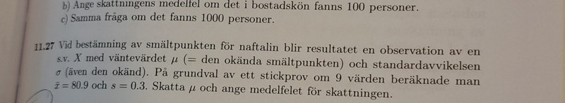 Ja exakt! Jag tänkte att man ska skatta såhär: u*=x(streck)/n=> 80.9/9=8.988 men facit håller inte med.