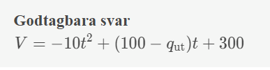 v(t) = 300 + - kt där integralen beskriver inflödeshastigheten och k är utflödeshastigheten.