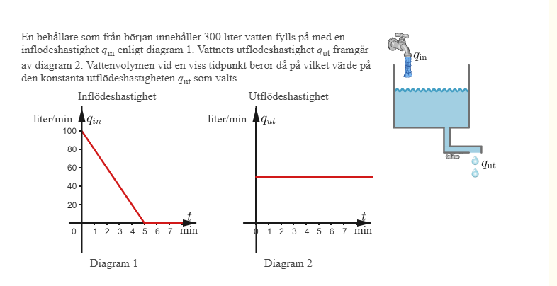 Enligt facit är det nämligen enbart den första som stämmer. Dessutom har de valt att skriva inflödeshastigheten med primtiv funktion. Detta förstår jag inte heller då det blir: inflödeshastighet = -10t^2 +100t + C. Men har vi ett värde för att beräkna även C?