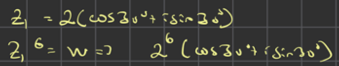 z^6 = 2^6( cos(30*6) + i sin(30*6) ) =64( (-1) + i (0) ) =-64