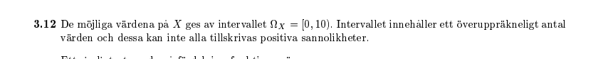 Min förvirring har med notation att göra. Min tolkning: Eftersom stokastiska variabeln är väntetiden, så förstår jag de värden som stokastiska variabeln antar, d.v.s. det som returneras av funktionen som definierar, är väntetiden. Alltså, värdemängden till den stokastiska variabeln är väntetiden.