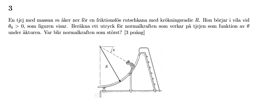 Tjej med massa m som glider ned för en rutschkana - bestäm maximal normalkraft