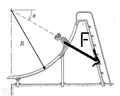Det var oklart vad du menade med F. Om det var flickans radiella kraft på rutschkanan är den förstås lika med normalkraften.