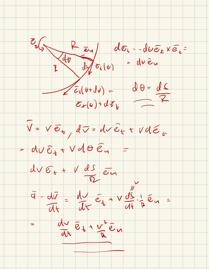 Jag vet inte varför man inte får med krökningen om man gör som jag försökte ovan, men ett mer explicit sätt kanske kan vara att försöka få med krökningen genom att titta på hur vinkeln förändras med cirkelbågen, alltså: