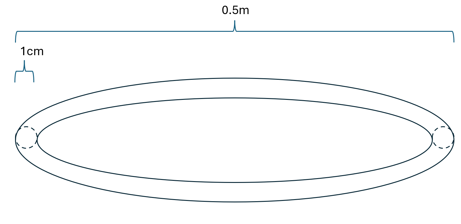 Jaha ok då förstår jag detta bättre nu. Så de menar ungefär såhär (se bild nedan). Den lilla cirkeln inuti den stora har diametern 1.0 cm och den stora har diametern 0.5 m.
