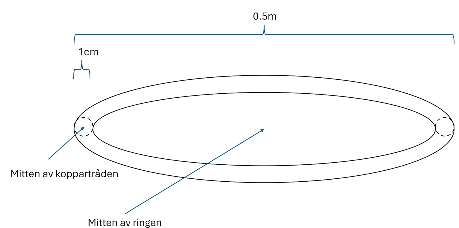 Ringens omkrets är typ 1,5 meter. Det är koppartrådens (kanske mer kopparstavens) längd.