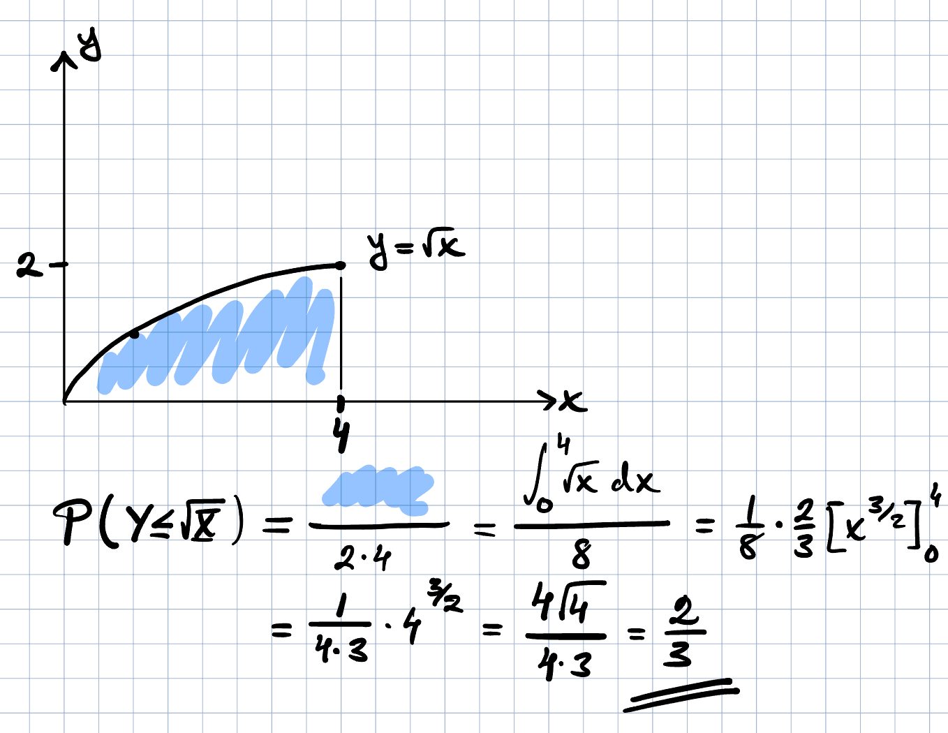 Bestäm geometriskt sannolikheten att y =< x^1/2