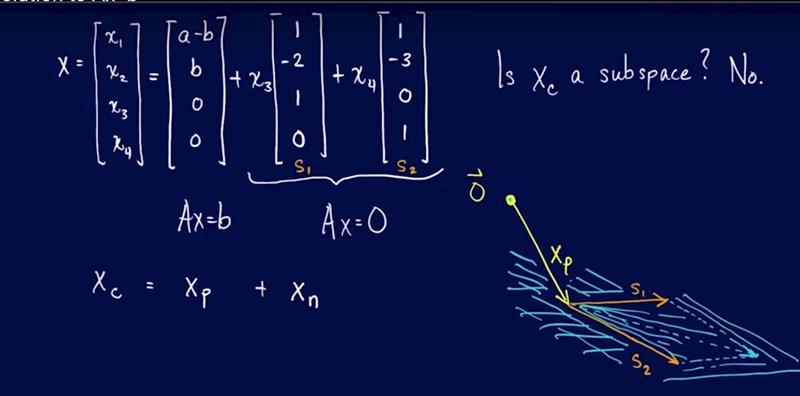 där a, b och c inte alla är noll. Om de alla är noll så får vi ett homogent system och då är, som vi vet, lösningsmängden ett delrum, dvs kerA.