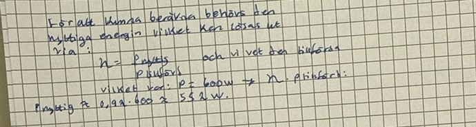 Den nyttiga effekten, 92% av tillförd effekt, blir mekaniskt arbete via motoraxeln.
