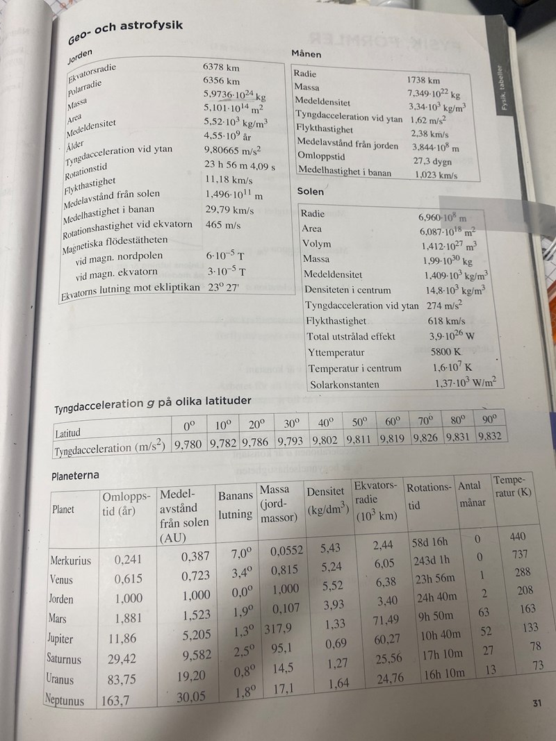 Ja, längst bak i fomel boken står det att omloppstiden är på sid 31