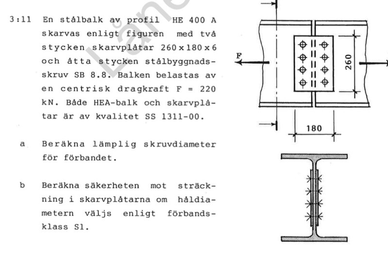 I a uppgiften behöver jag räkna både på skjuvspånnong i skruvarna och hålkantstrycket. När jag ska räkna hålkantstrycket har jag formeln: