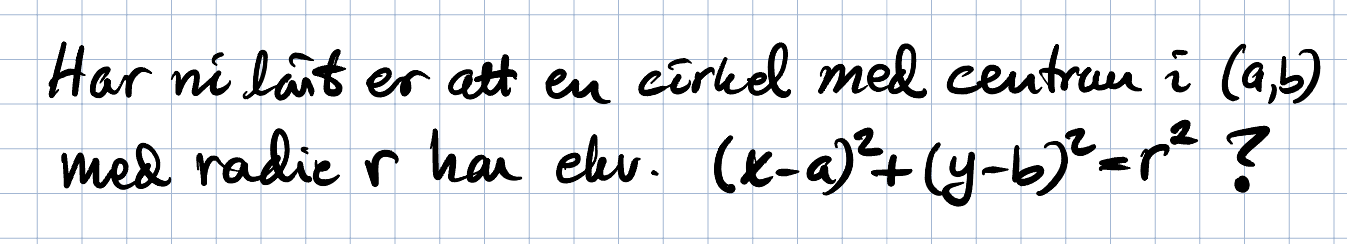 Vet du hur en cirkels ekvation ser ut om den har en medelpunkt och en radie?