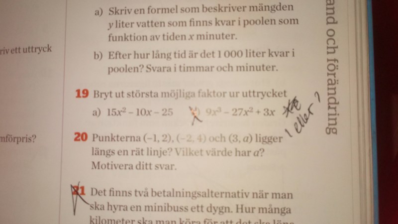 Eftersom skulle ju den sista termen bara försvinna, vilket inte är fallet. Om du däremot multiplicerar så får man , alltså borde den sista termen vara en etta i faktoriseringen.