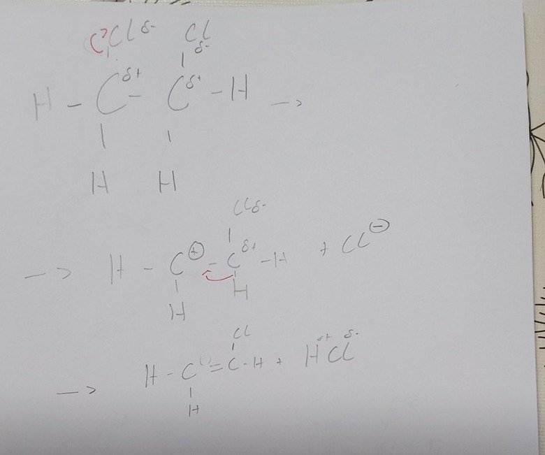 Jag vet att vi kommer att få en dubbelbindning, en alken, tänker att klor måste lämna på något sätt på grund av detta. Är osäker om det också behövs någon katalysator.