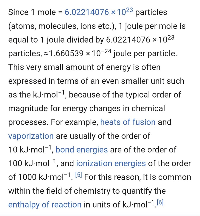 Yes ,men såhär säger wikipedia. Du nämner att jag ska multiplicera med Avogrados tal men de säger att man ska dela för att få i joule per mol?