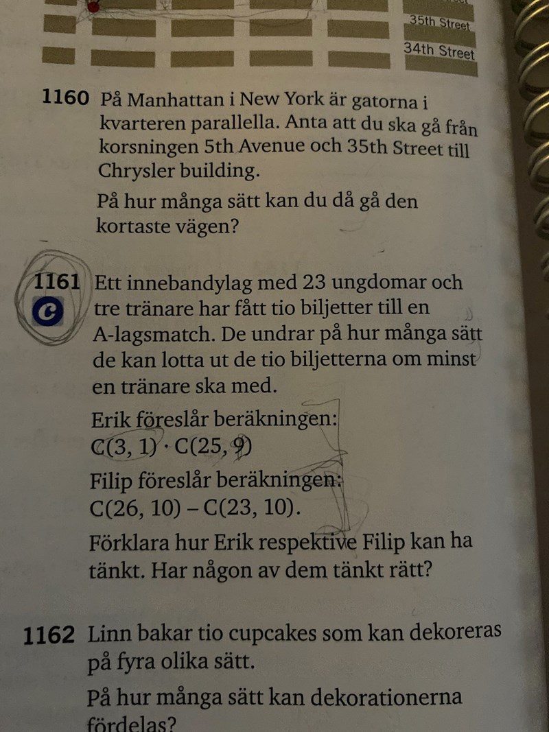 Att vi väljer tränare y med C(3,1) och får in tränare x i C(25,9) är en annan möjlighet.