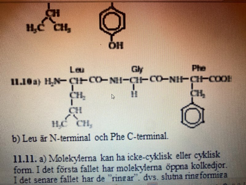 Fenylalanin har en fenylgrupp, man hör det på namnet. Man skriver peptider med N-terminalen först o C-terminalen sist. Om man inte får slå upp hur aminosyrornas sidokedjeor ser ut är det tyvärr bara att plugga in dem. Om man vet hur alanin ser ut kan man gissa sig till hur fenylalanin ser ut, men det är nog ett undantag.