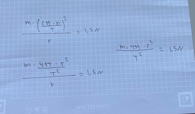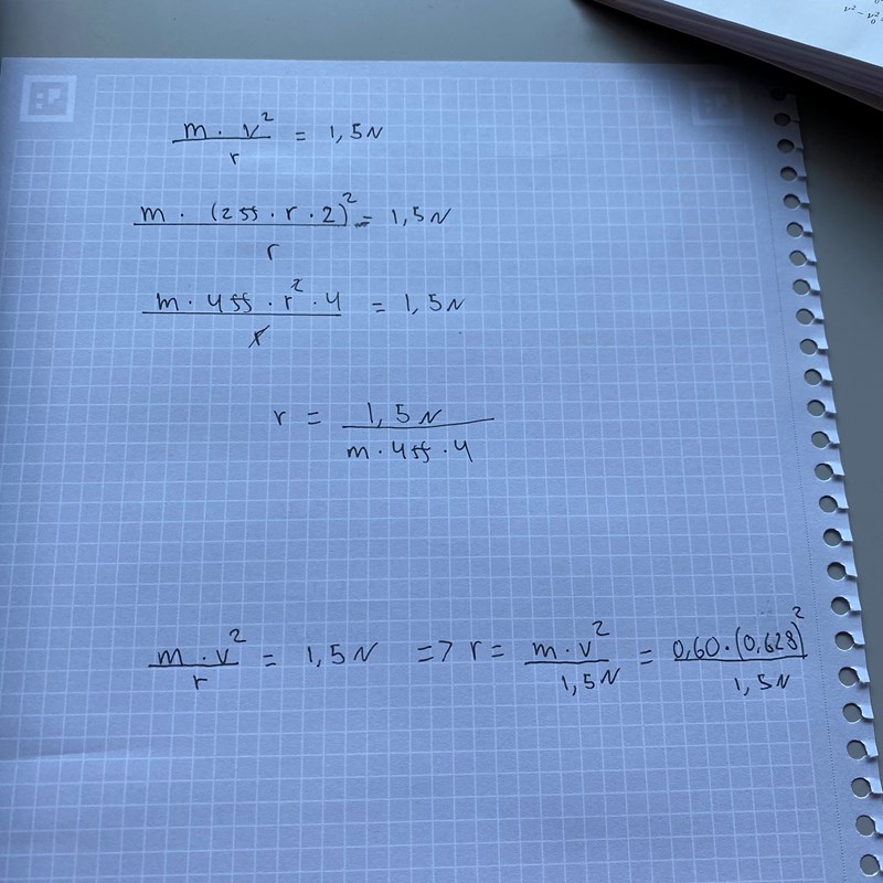 Vilken radie gör att centripetalkraften är lika med 1,5 N? Det är ju friktionskraften som gör att klossen ligger stilla.