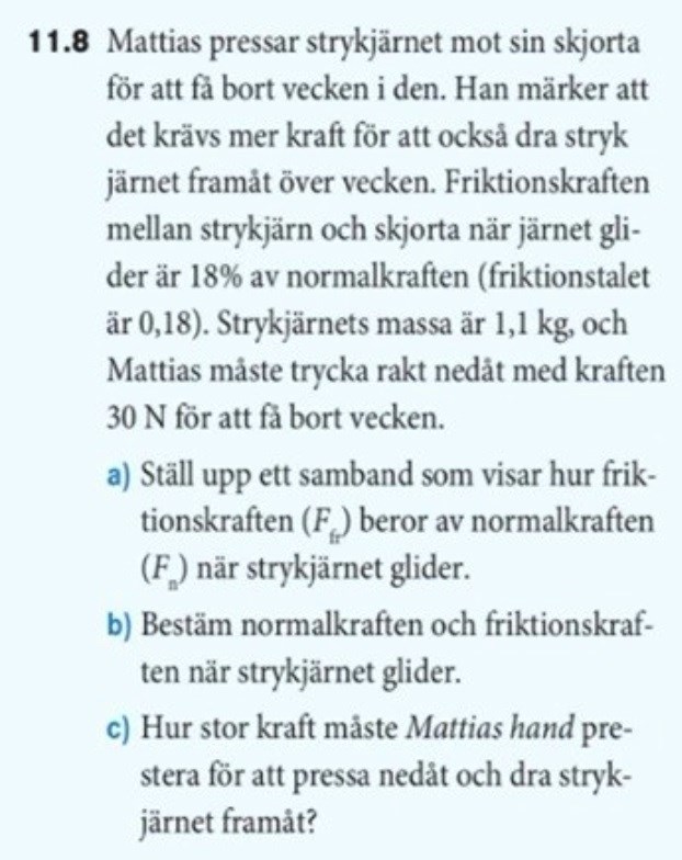 a) Vi vet att normalkraften är lika med friktionskraften gånger 0,18. Så FN=0.18μ.