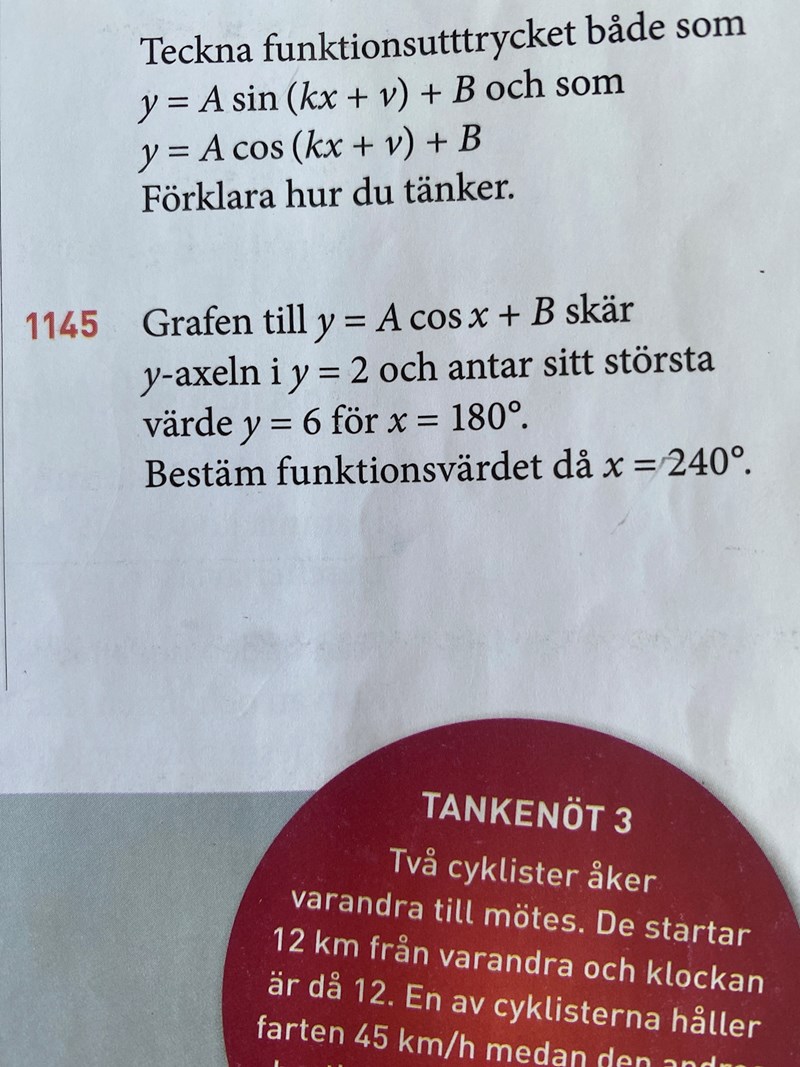Denna uppgift förvirrar mig.. borde inte B vara 2 eftersom kurvan inte är förljugen o då borde där kurvan skär y axeln vara mittlinjen?