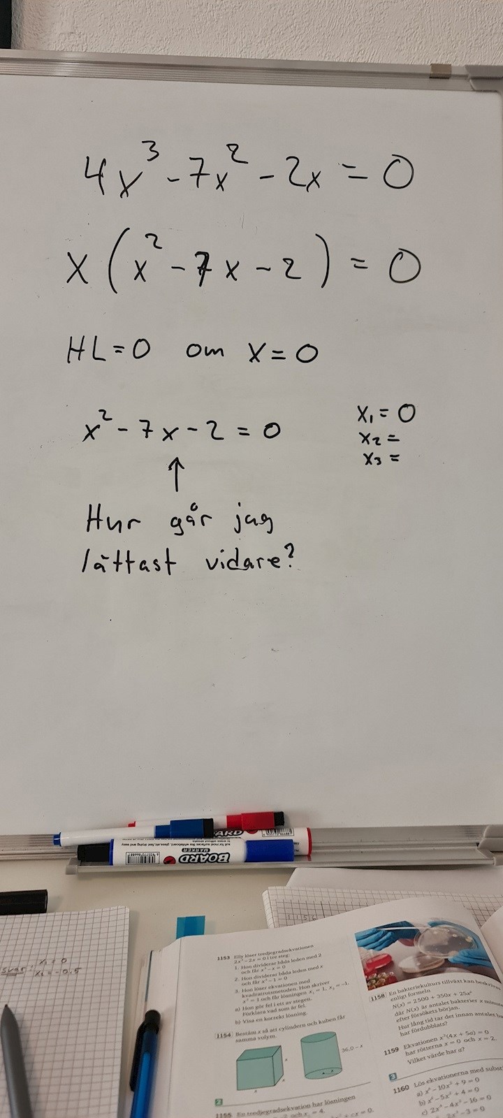 Sedan kan du använda pq-formeln för x^2 – 7x/4 –2/4 = 0