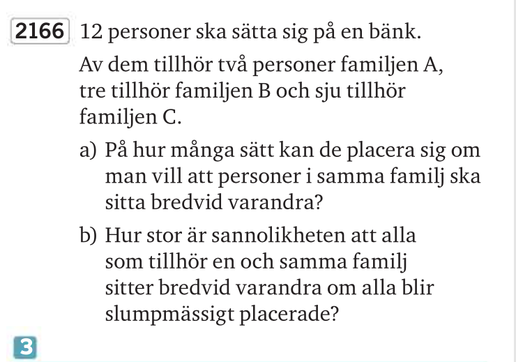 12 personer på en bänk - klurig uppgift i kombinatorik