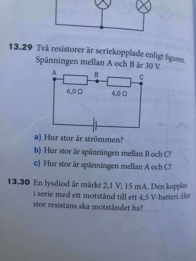 Jag antar att du är klar med uppgift 13.29? Spänningen mellan A och C är summan av spänningarna över A - B och B - C