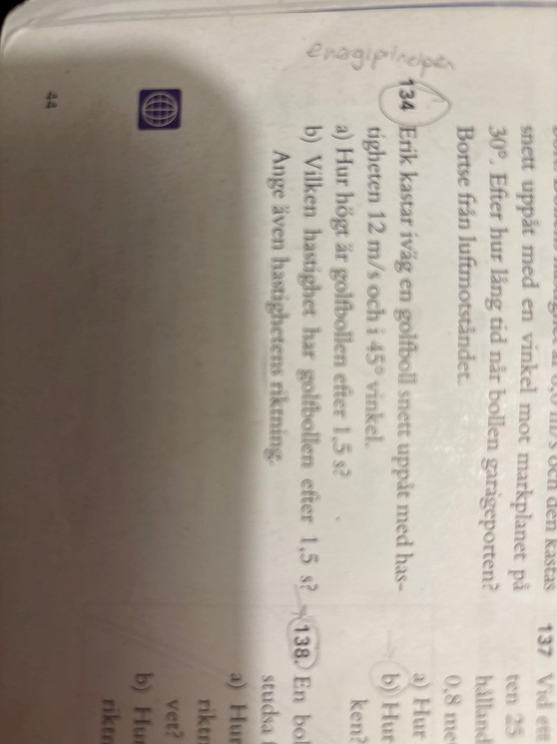 Om du lägger in ett koordinstsystem med origo i utkastpunkten, x-axeln horisontellt och y-axeln vertikalt pekandes uppåt så blir