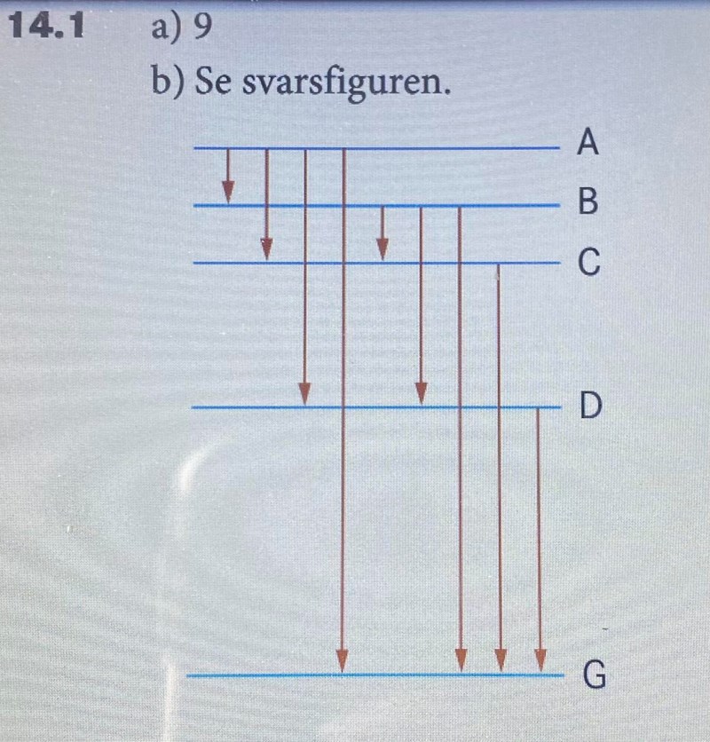 Vitsen här verkar vara att energiövergången från C till D är förbjuden. Det kan man se i ritningen av modellen men det är extremt subtilt.
