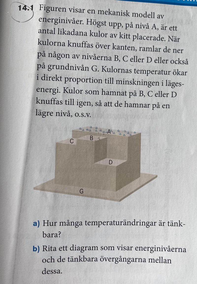 Jag har fastnat på a samt b uppgiften som går ihop egentligen, det jag inte förstår är varför det inte är 10 temperaturändringar, dvs jag förstår inte varför facit inte har en pil från C till D utan enbart en direktpil från C till G. Blir tacksam för hjälp!