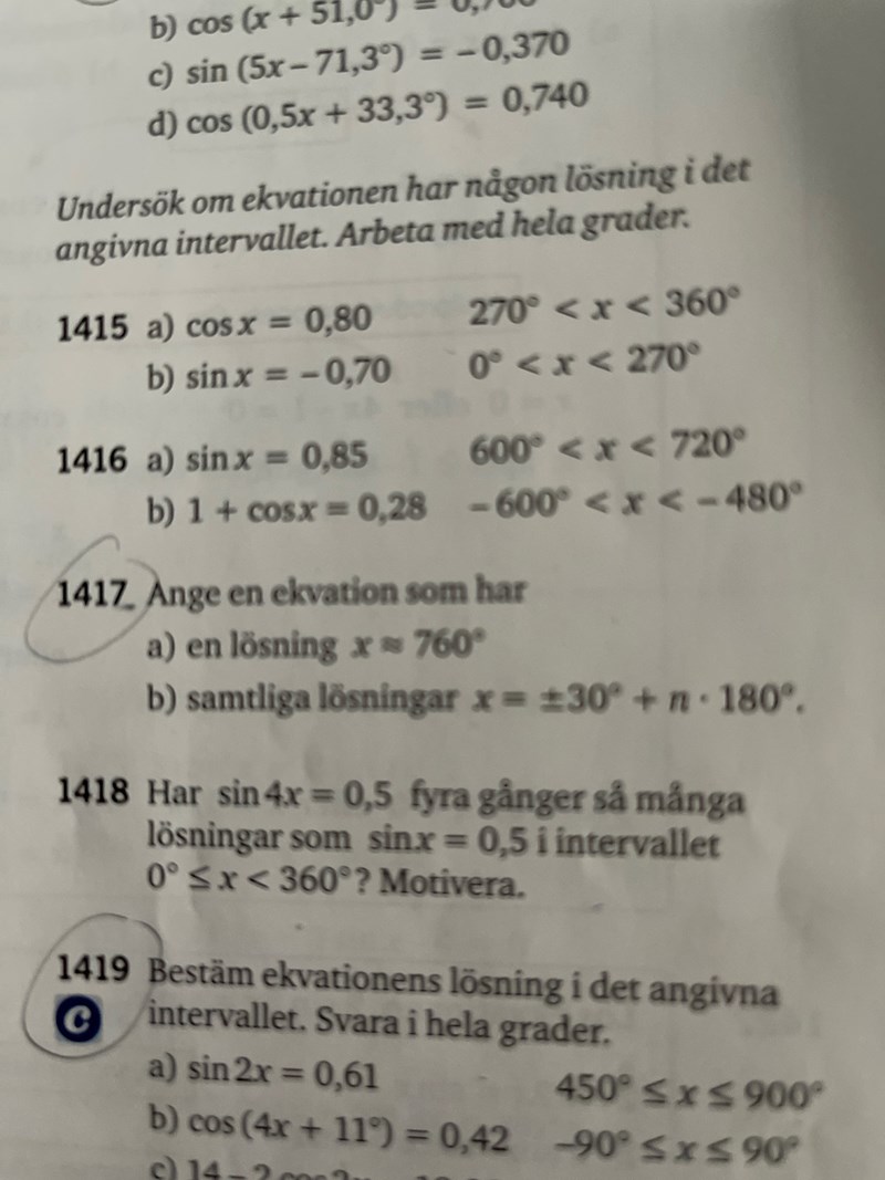 1417 b (Ange en lösning som har ekvationen)